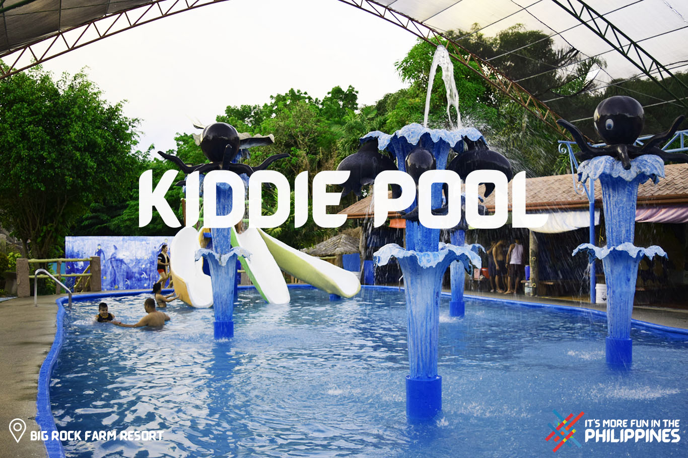 Our Resort have the following: Slides, Jacuzzi, Hanging Bridge, Mini-Falls, Cave Pool, Sky Cycle, Adult Pools, Kiddie Pools, Multi-purpose Hall/Function Room, Life-size figures of Animals, Canteen, Souvenir/Gift Shop, Store, Basketball Court and other attractions like the Love Tower.